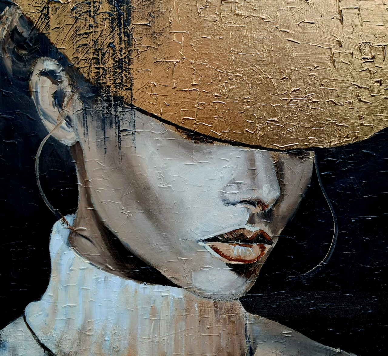 De schilderijen van Marion Nap kenmerken zich door een sober maar gelaagd kleurenpalet: zwart, wit, bruin en grijs vormen de basis, terwijl accenten in brons en goud een luxueuze glans en diepte toevoegen. Haar werk is meer dan schilderkunst — het is, in haar eigen woorden, een visueel statement waarin vrouwelijke kracht, mystiek en zelfbewustzijn centraal staan.